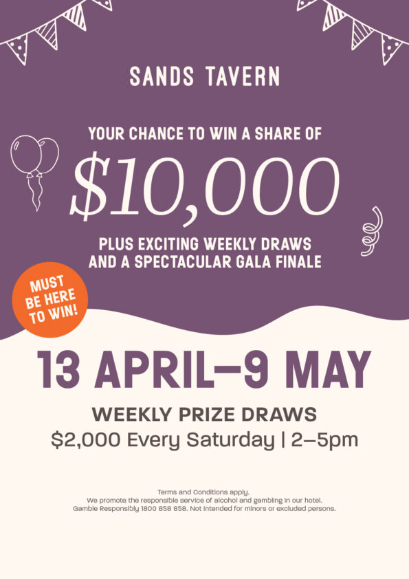 Welcome to Sands Tavern, your home away from home. Bring the kids, round up your mates, and pull up a chair for easy pub meals, cold drinks, and good company. Whether you’re here for a family lunch, a game-day session, or a laid-back afternoon in the beer garden, The Sands is all about sharing good times with the people around you.