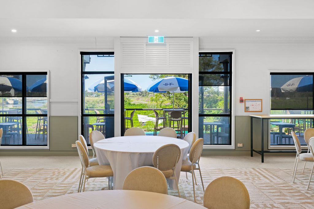 For larger gatherings that need extra space and a more dynamic setting, the Function Room and Deck can be combined to create an extended indoor–outdoor event space. By opening the two areas together, the room flows seamlessly from the private indoor function space onto the Deck, allowing guests to move freely between the two environments.